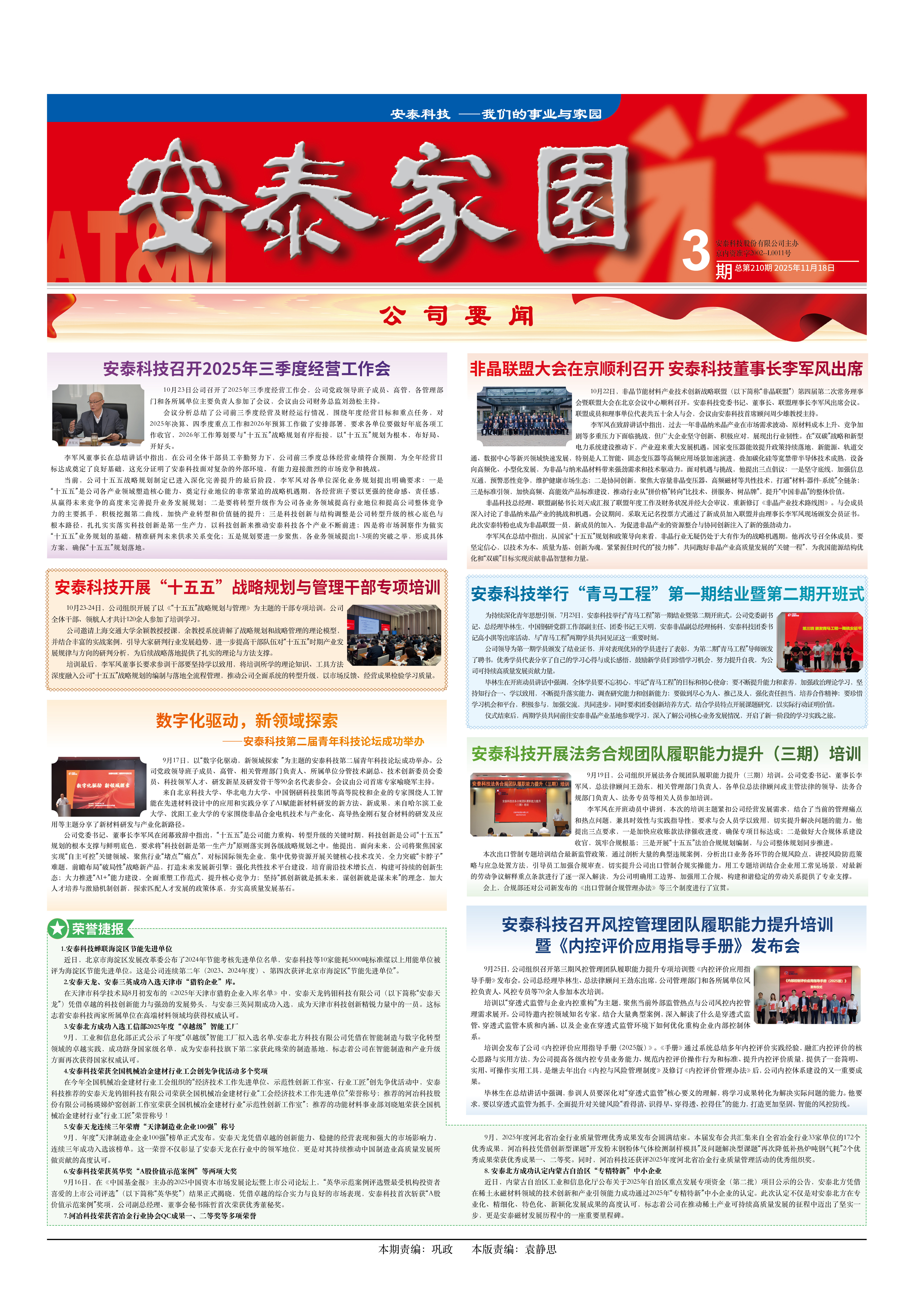 会议分析总结了公司前三季度经营及财经运行情况,围绕年度经营目标和重点任务,对2025年决算、四季度重点工作和2026年预算工作做了安排部署,要求各单位要做好年底各项工作收官,2026年工作筹划要与“十五五”战略规划有序衔接,以“十五五”规划为根本,布好局、开好头。